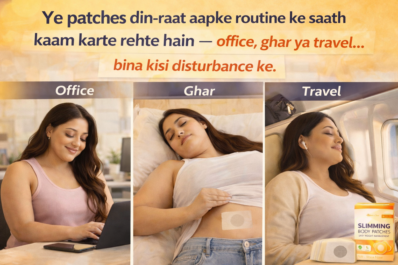 These Slimming Body Patches are designed to be applied near the belly button area, where they sit comfortably on the skin and provide gentle weight-management support throughout the day or night.